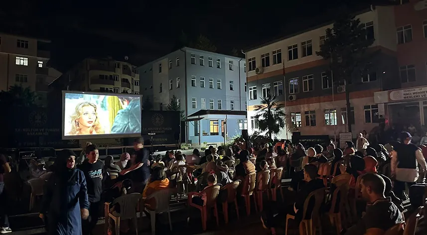 Trabzon'un Of ilçesinde düzenlenen "Gezici Sinema Günleri" ile vatandaşlar açık hava sinemasının keyfini yaşadı.