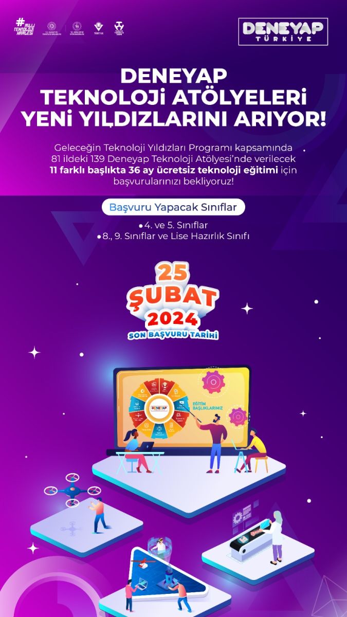 Tüm aşamaları başarıyla tamamlayan öğrenciler, Deneyap Teknoloji Atölyelerinde eğitim almaya hak kazanacaklar.