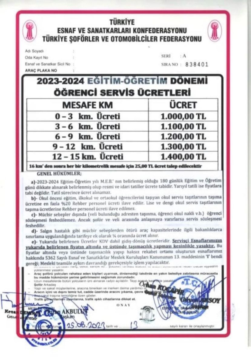 Türkiye Şoförler ve Otomobilciler Federasyonu 2023-2024 Eğitim-Öğretim dönemi servis ücretlerini açıkladı.