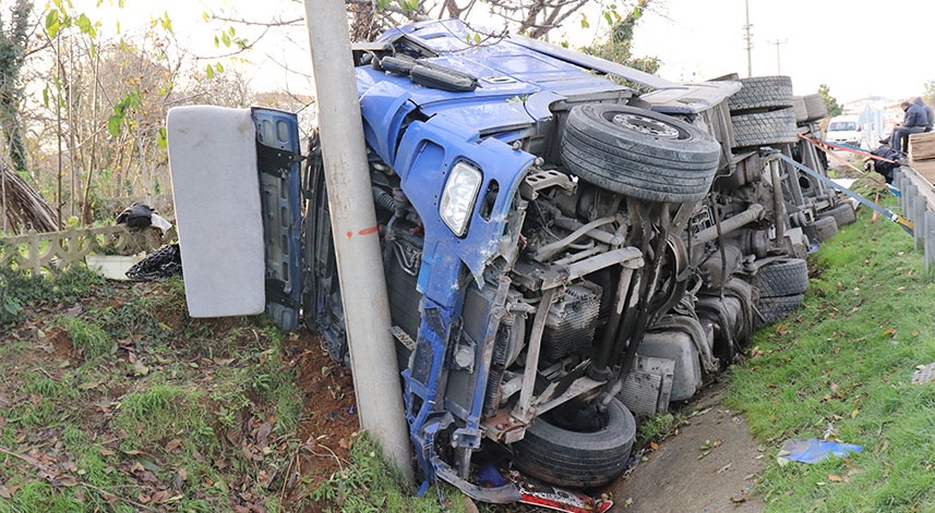 Gürcistan uyruklu Patala Shavedze yönetimindeki NA-002-D plakalı tır, Ünye Devlet Sahil Yolu'nun Yüceler Mahallesi mevkisinde, sulama kanalına devrildi.