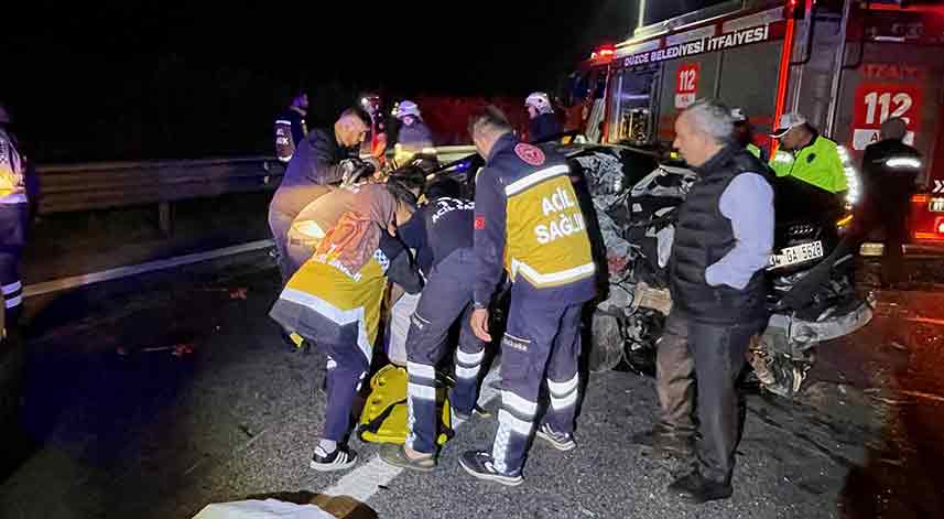 Bariyerlere çarparak durabilen otomobildeki sürücü Adem Ok ve Süleyman Nadir Ataman ise yaralandı. Yaralılar olay yerine gelen ambulanslara alınarak Düzce Atatürk Devlet Hastanesine kaldırıldı.