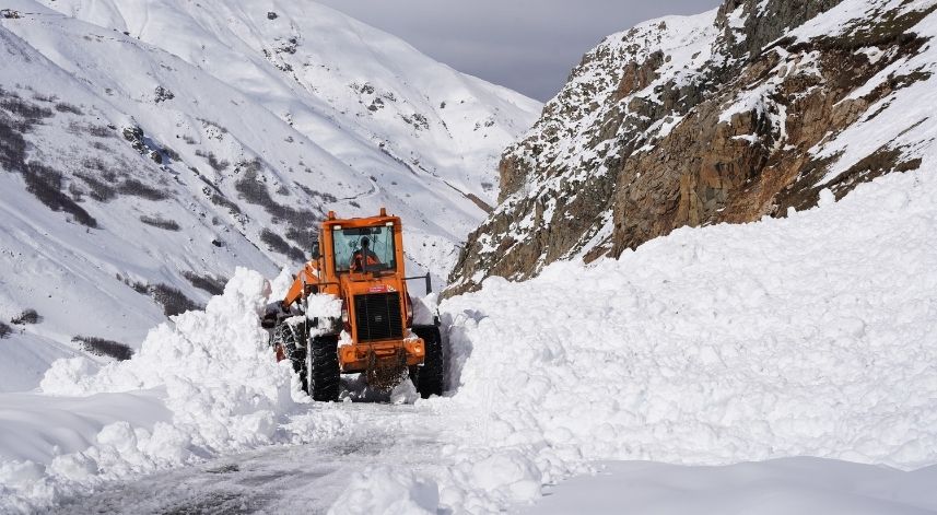 Rize’nin yüksek kesimlerini etkisi altına alan kar yağışı nedeniyle kapanan Ovit Dağı Geçidinde ekipler yaylacılar için özel mesai yapıyor.