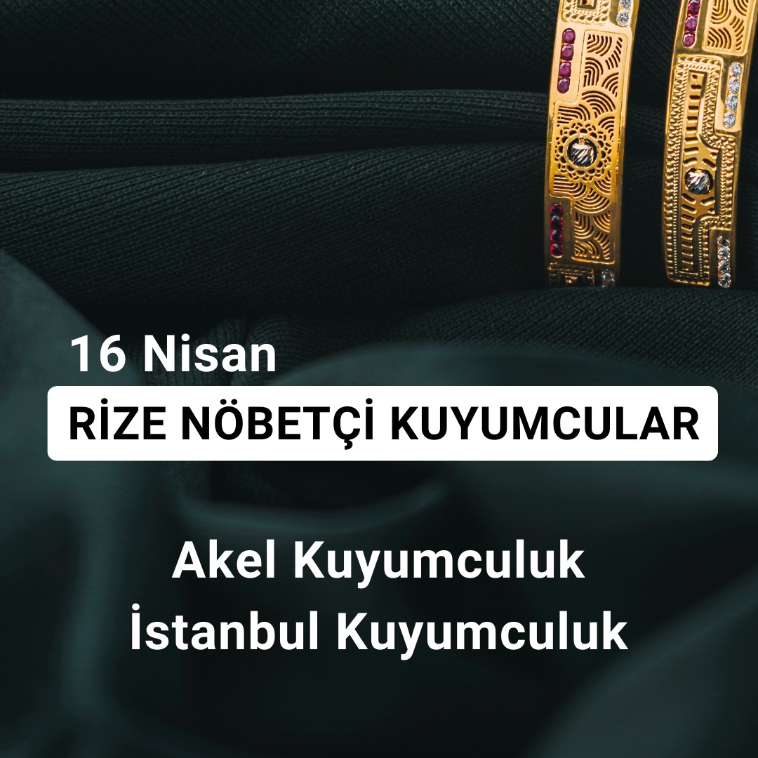 Rize'de 16 Nisan Pazar günü Akel Kuyumculuk ve İstanbul Kuyumculuk nöbetçi olarak vatandaşa hizmet verecek.