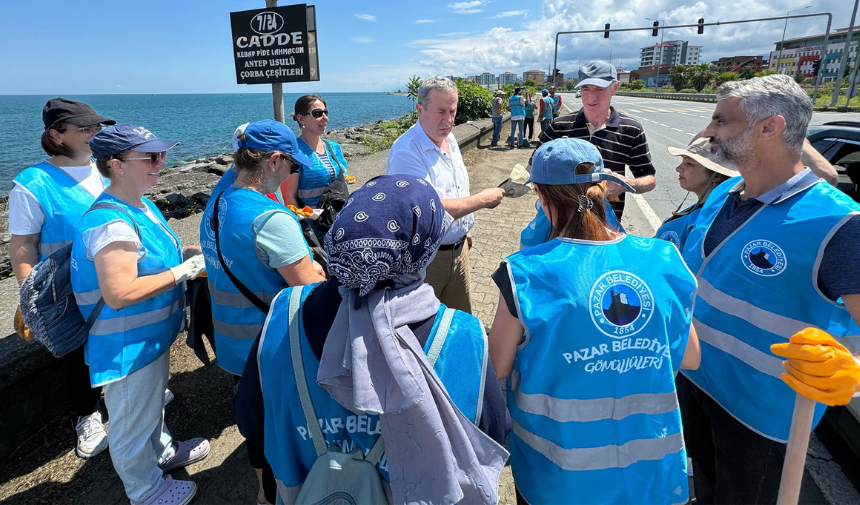 Pazar Sahilinde Temizlik Çalışması Yapıldı Rize'nin Pazar ilçesinde Hamidiye mevkisi sahil bandında, Pazar Belediye Başkanı Neşet Çakır ve gönüllüler tarafından temizlik çalışması gerçekleştirildi.