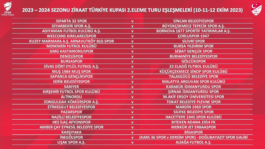 Türkiye Futbol Federasyonundan (TFF) yapılan açıklamaya göre kura çekimi, kulüp yetkililerinin katılımıyla saat 14.30'da Orhan Saka Konferans Salonu'nda yapıldı.