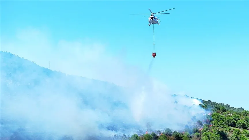 Orman Bölge Müdürlüğü ile Türk Silahlı Kuvvetlerine ait yangın söndürme helikopterleri de çalışmaları destekledi.