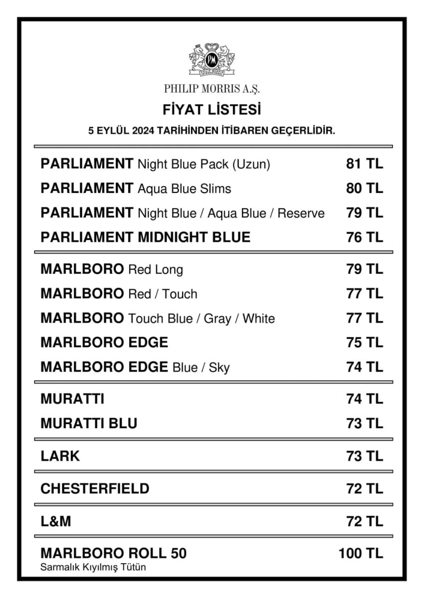 Sigara grubunun en pahalı sigarası 81 TL; en ucuzu ise 72 lira oldu.