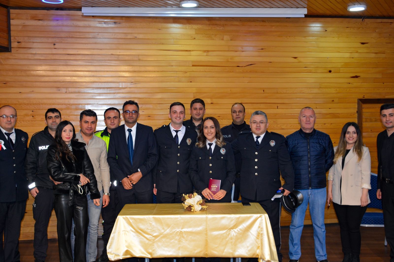 Çalışma arkadaşları da çifti mutlu günlerinde yalnız bırakmadı. Başkan Çaylı, polis memuru eşleri tebrik ederek, ömür boyu mutluluklar diledi.