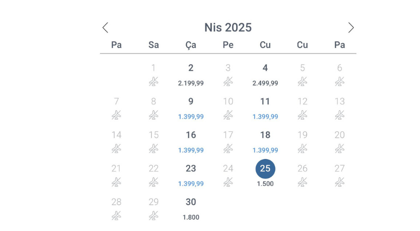 Şu an için biletler 1.400 TL ile 2.500 TL arasında değişiyor.