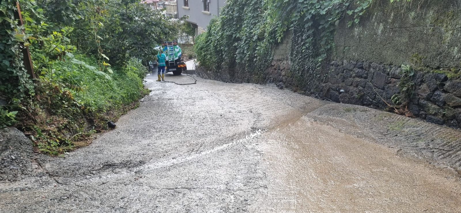 Rize Belediyesi Temizlik İşleri ekipleri, Araklı’da meydana gelen afetin ardından bölgedeki temizlik çalışmalarına destek veriyor.