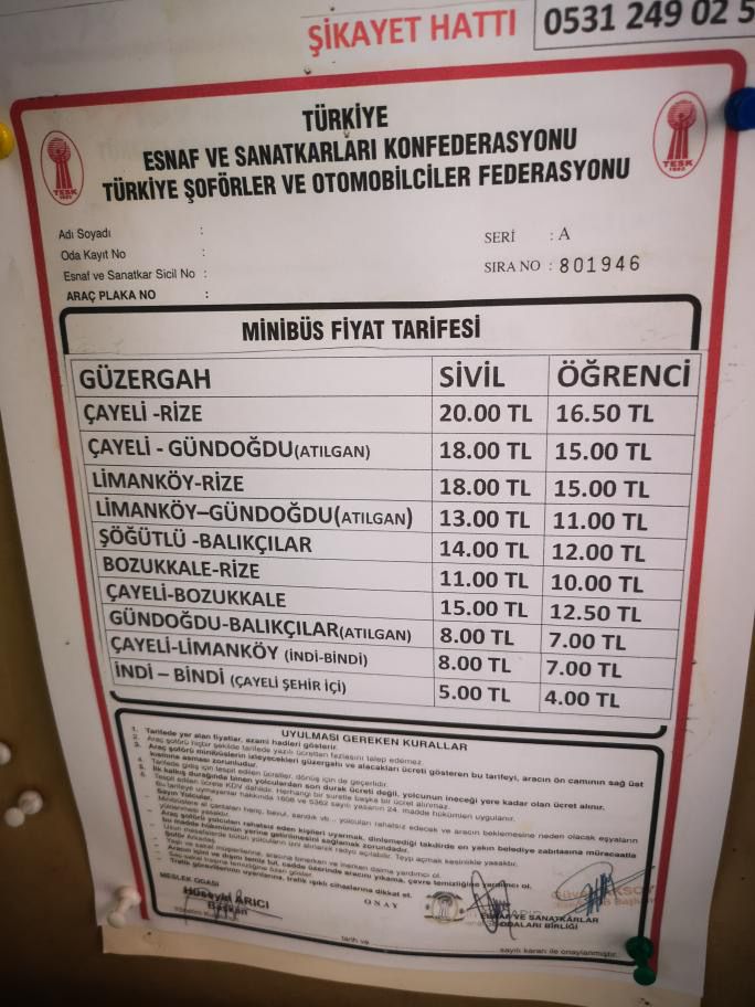 Oldukça fazla kullanılan Rize-Çayeli minibüs hattı yolcuları, bu sabah yeni fiyat tarifesine uyandı.