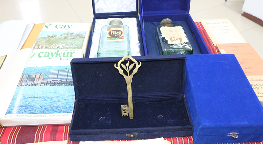 Çayla ilgili yapılan araştırmalardan, fotoğraflara kadar bir çok eski ürün bulunduğunu ifade eden Recep Koyuncu, “Bizim merkezde Rize ihtisas kütüphanesi var. Rize ile ilgili olan kitap, dergi, gazete, fotoğrafları arşivleyip araştırmacılara sunmaktayım. Bu yıl çayımızın Rize’ye gelişinin 100. Yılı olması münasebetiyle bugün çay kitapları ve çay dergileri adlı sergi hazırladık. 1934 yılından başlayan bir fotoğraf albümü var. Ziraat çay bahçesinde yapılan çalışmalarla ilgili fotoğraflar. 1966 yılında şehrimizi ziyaret eden Cumhurbaşkanı Cevdet Sunay’ın fotoğrafları var. 1986 yılında yapılan uluslararası çay sempozyumunun orijinal albümü ile başladık. 1931-1945 tarihleri arasında çayla ilgili orijinal belgeler var. 2005 yılında kurmuş olduğum Rize ihtisas kütüphanesiyle başladım. O tarihten bu yana biriktiriyorum” şeklinde konuştu.
