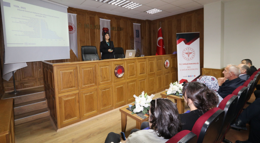 Rize İl Sağlık Müdürlüğünce şehirdeki kamu kurum personeli, öğrenciler, aileler ve denetimli serbestlik altında bulunan yükümlülere yönelik '1-7 Mayıs Bilişim Haftası' kapsamında 'Davranışsal Bağımlılıkla Mücadele' eğitimi düzenlendi.