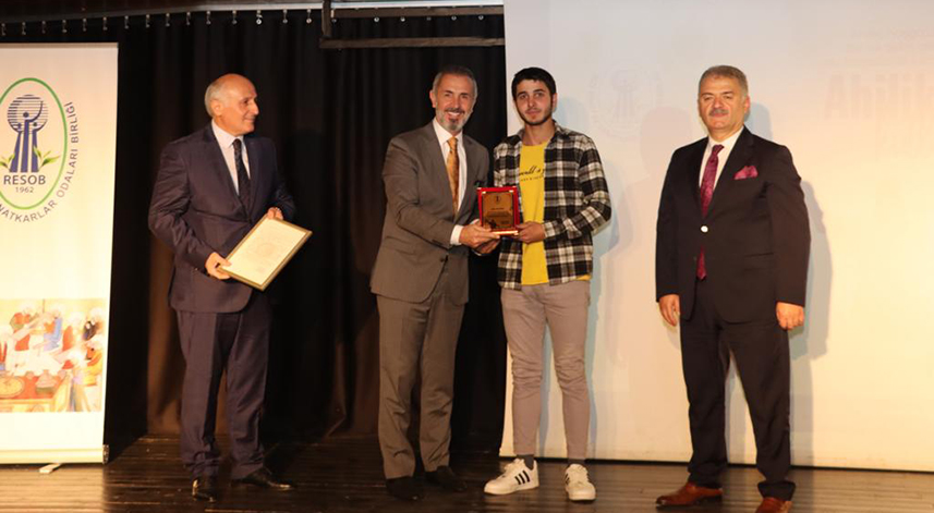 'Yılın kalfası' seçilen Berat Balcı'ya plaketini Belediye Başkan Vekili Genç, 'yılın çırağı' seçilen Emirhan Bilgin'e de plaketini İl Milli Eğitim Müdür Vekili Ofluoğlu verdi.