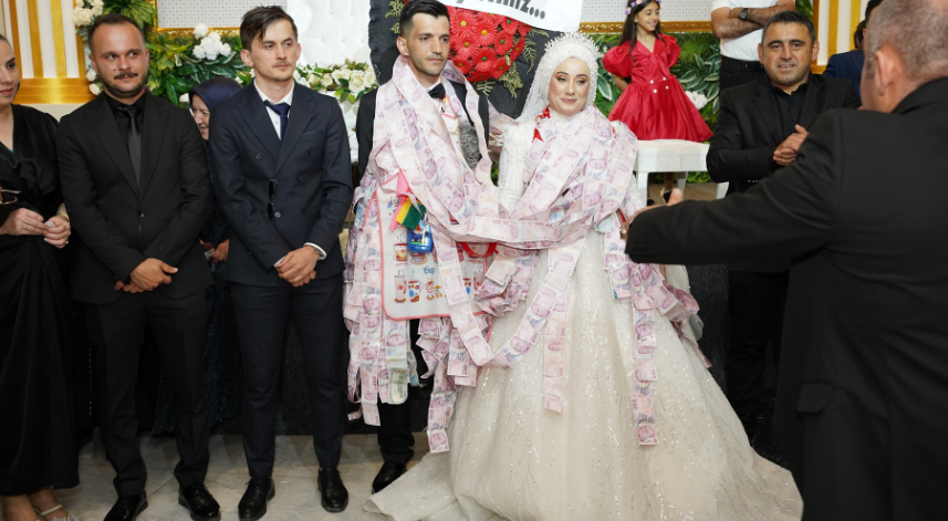 Çift sürprizin son bulacağını zannettiği sırada bu kez bir başka mesai arkadaşı grup salona girdi. Çifte doğru yürüyen grup damada bulaşık önlüğü, temizlik bezi, bulaşık deterjanı, bulaşık süngeri, emzik, temizlik fırçası, süzgeç, bulaşık teli taktı. Damadın eline de temizlik eldiveni geçiren grup geline de merdane hediye etti. O esnada ise salonda Davut Güloğlu'nun içerisinde, "Güleyirum haluna katula katula, bir sözüni geçuremedun karina" sözlerinin yer aldığı "Katula Katula" isimli şarkısı çaldı. Salondaki davetliler de şarkıya alkışlarla eşlik ederken kimi o anları ölümsüzleştirmek için cep telefonu kameralarıyla kayıt aldı. Renkli görüntülerin ortaya çıktığı düğünde Rize Devlet Hastanesi çalışanlarının şovu önceden hazırlanan para kordonunu damat ve gelinin boynuna dolamasıyla son buldu.