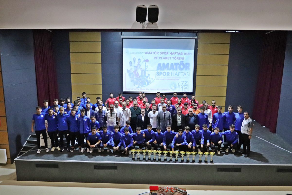 Etkinliğin devamında Rize Gençlik Merkezi Konferans Salonu’nda yapılan törende 2023-2024 futbol sezonunda Süper Amatör Lig’e ismi verilen merhum Ziya Aksoy, 1. Amatör Lig’e ismi verilen merhum Muhammet Fırıncı ve Alt Yaş Liglerine ismi verilen merhum Metin Dilli’nin ailelerine plaketlerini takdim edildi.