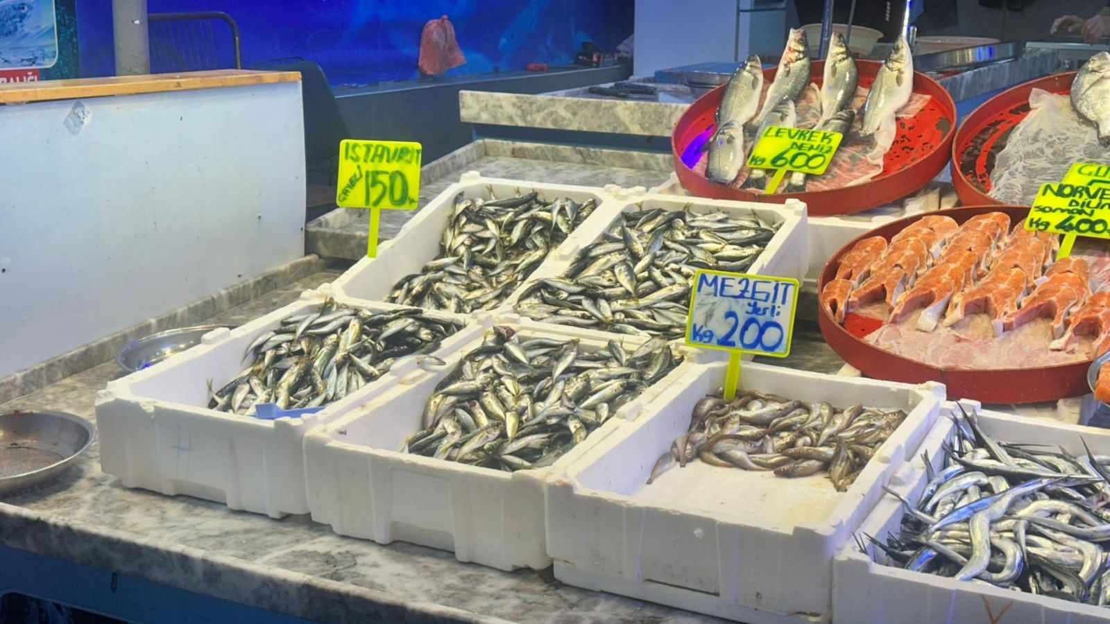 Tezgâhlarda yer alan bilgilere göre hamsi ve istavrit kilogramı 100 TL’den, mezgit 200 TL’den, Karadeniz somonu ise 250 TL’den satışa çıktı.