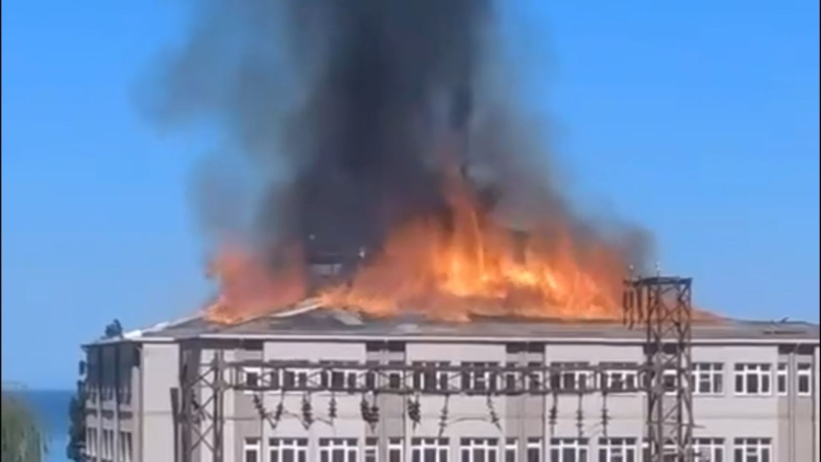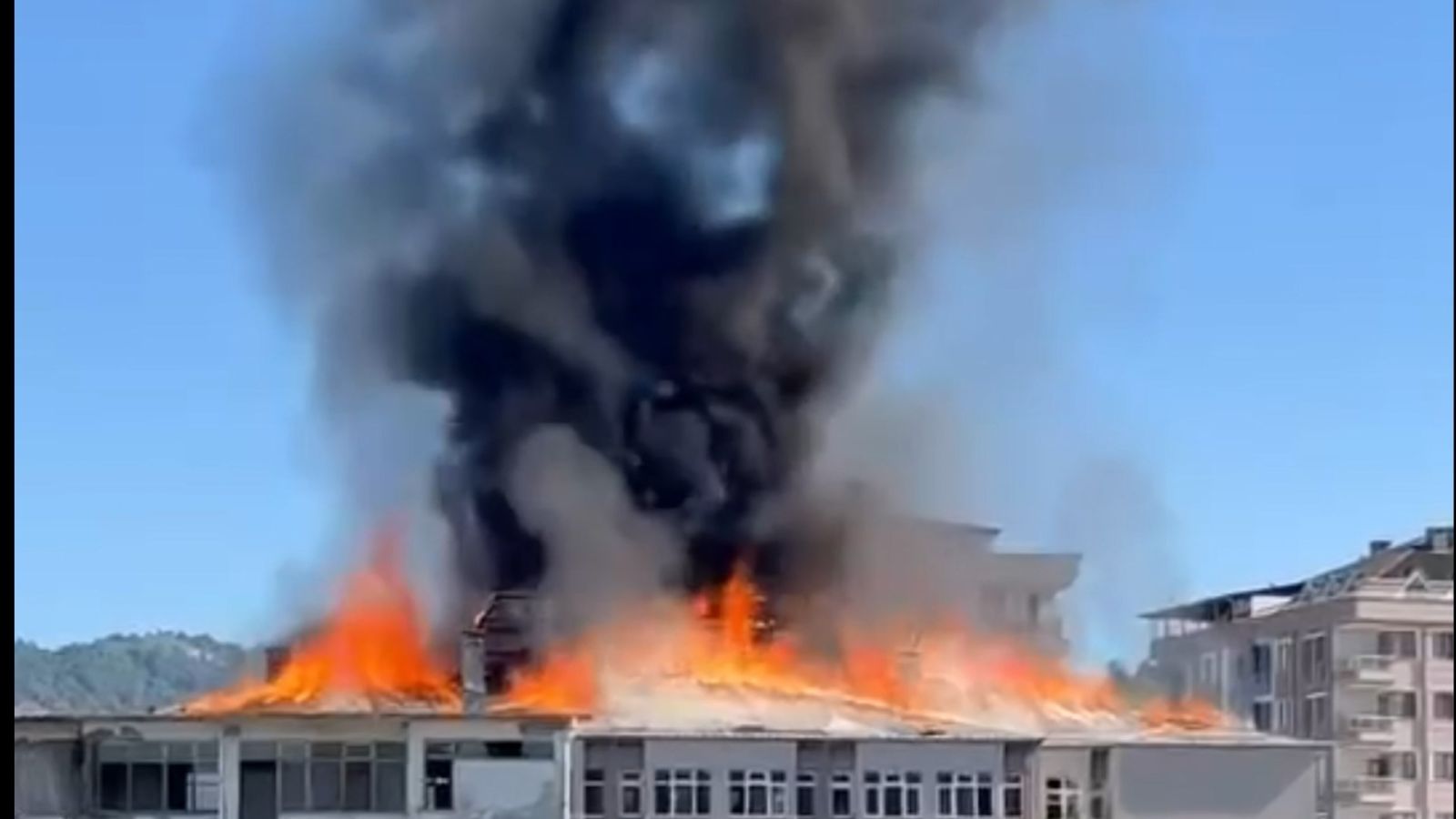 Rize’nin Çayeli ilçesinde boşaltılan bir binanın çatısında çıkan yangın paniğe yol açtı.