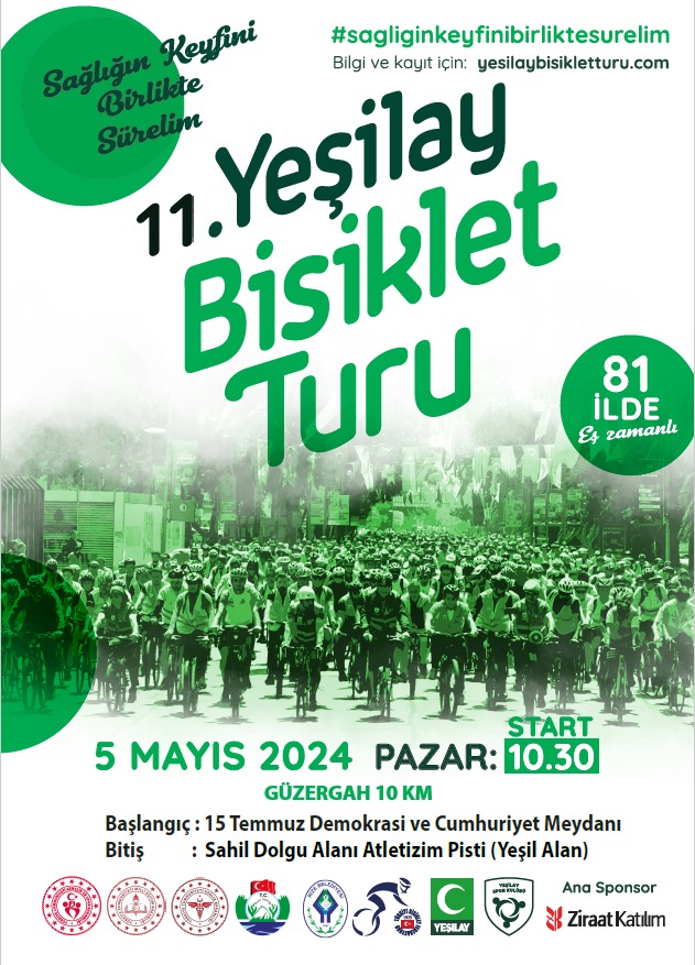 Yeşilay’ın 2011 yılından bu yana organize ettiği Geleneksel Yeşilay Bisiklet Turu’nun 11’incisi, 5 Mayıs 2024 Pazar günü “Sağlıklı yaşamın keyfini birlikte sürelim” sloganıyla düzenlenecek. T.C. Gençlik ve Spor Bakanlığı ve Türkiye Bisiklet Federasyonu’nun iş birliğiyle Türkiye'nin tüm şehirlerinde eş zamanlı düzenlenecek Geleneksel Yeşilay Bisiklet Turu, 10 bini aşkın bisikletseveri bir araya getirerek bağımlılıkların zararlarına dikkat çekecek ve sağlıklı yaşam bilincinin artmasına katkıda bulunacak.