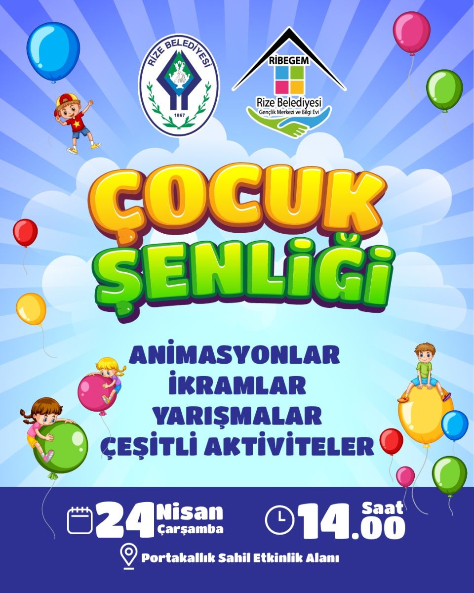 Rize Belediyesi Gençlik Merkezi ve Bilgi Evi (RİBEGEM) tarafından, Rize’de Çocuk Şenliği düzenlenecek.