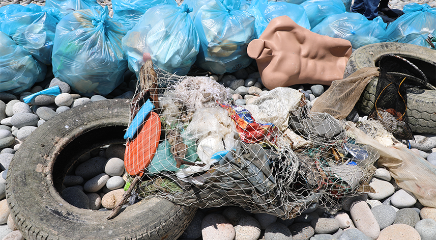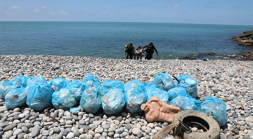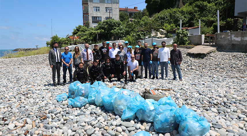 Rize'nin İyidere ilçesinde deniz dibi ve kıyıda yapılan temizlik çalışmasında 150 kilogram atık toplandı.