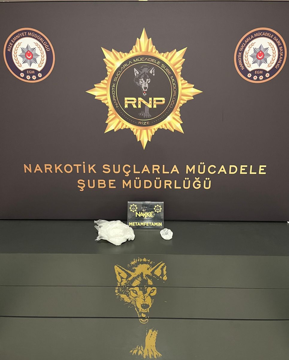 Rize İl Emniyet Müdürlüğü'nden yapılan açıklamada, Narkotik Suçlarla Mücadele Şube Müdürlüğü ekiplerince durdurulan araçta yapılan aramada 2 parça halinde toplam ağırlığı 217,24 gram olan metamfetamin maddesi ele geçirildiği bildirildi.