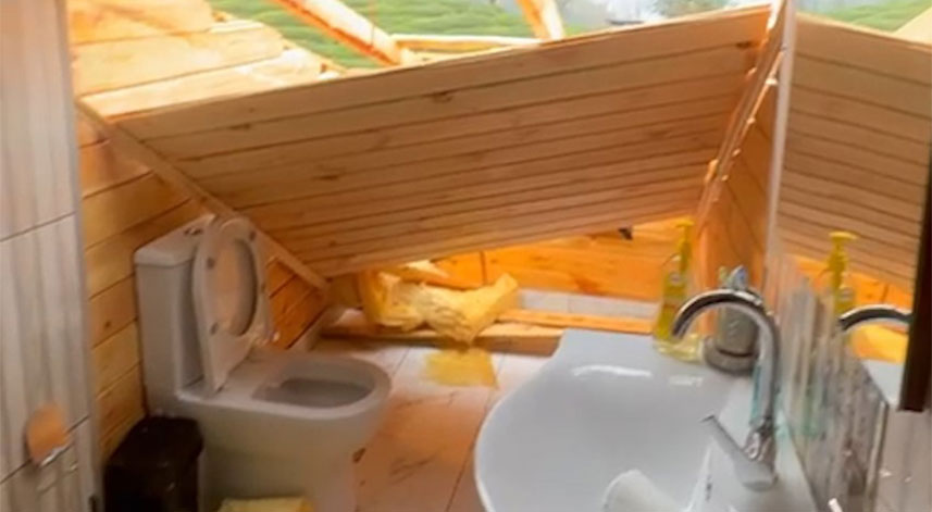 Rize merkeze bağlı Muradiye Beldesi’nde şiddetli fırtınanın zarar verdiği ahşap ev kullanılamaz hale geldi.