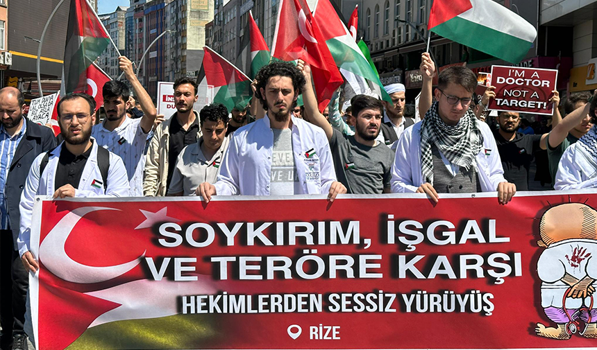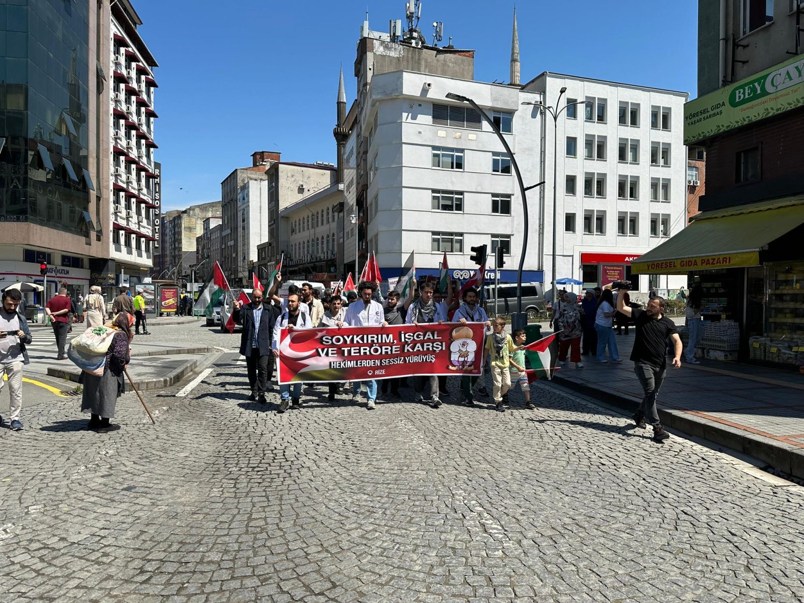 Rize'de farklı hastanelerde görev yapan doktorlar İsrail'in Gazze'ye yönelik saldırılarını protesto için sessiz yürüyüş düzenledi.