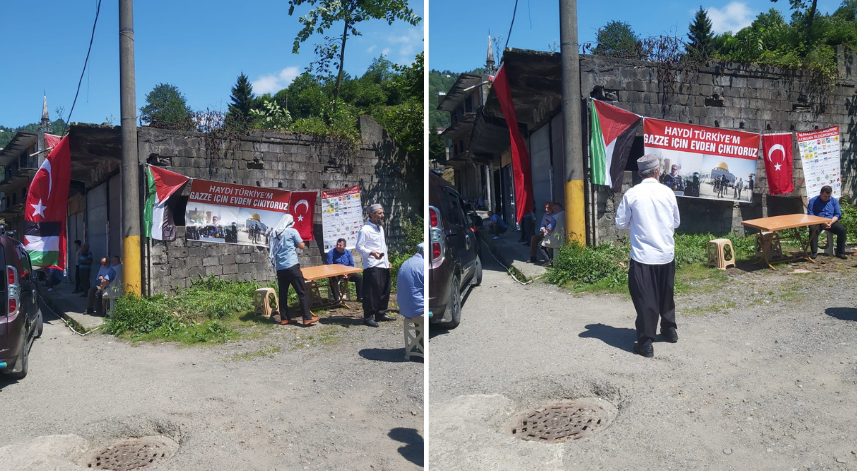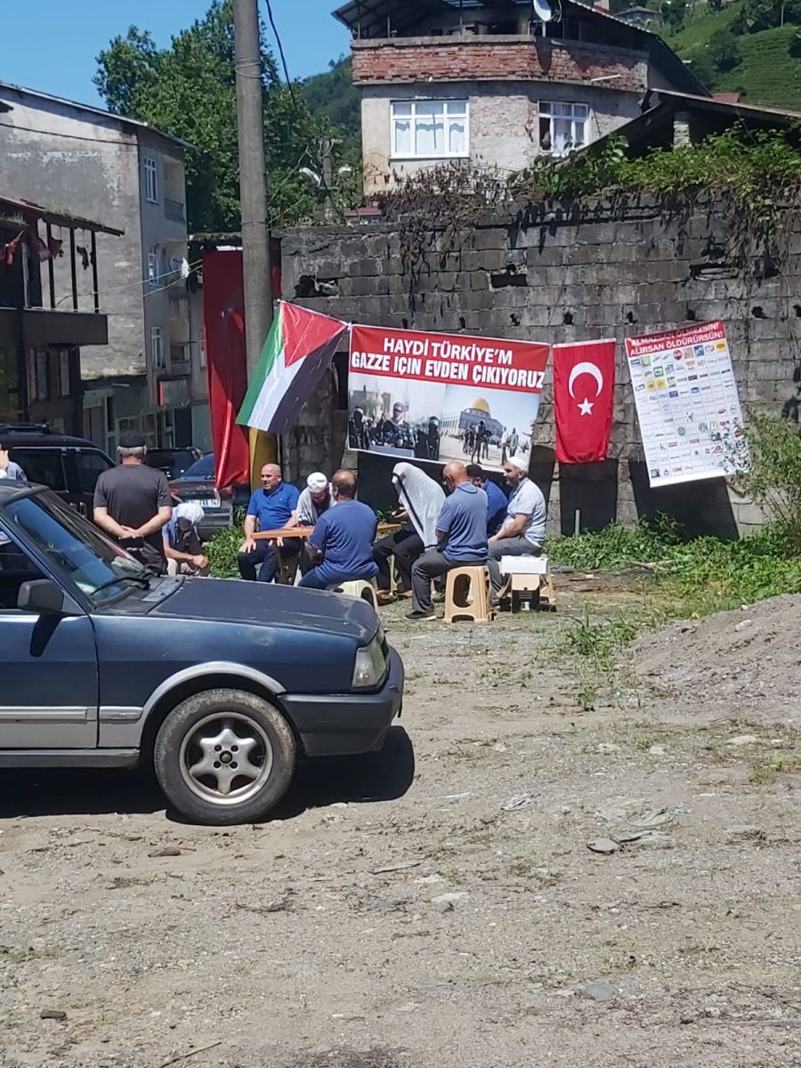 Rize'nin merkeze bağlı Dörtyol köyünde bir grup vatandaş "Haydi Türkiye'm Gazze İçin Evden Çıkıyoruz" sloganlarıyla köy meydanında bir araya geldiler.