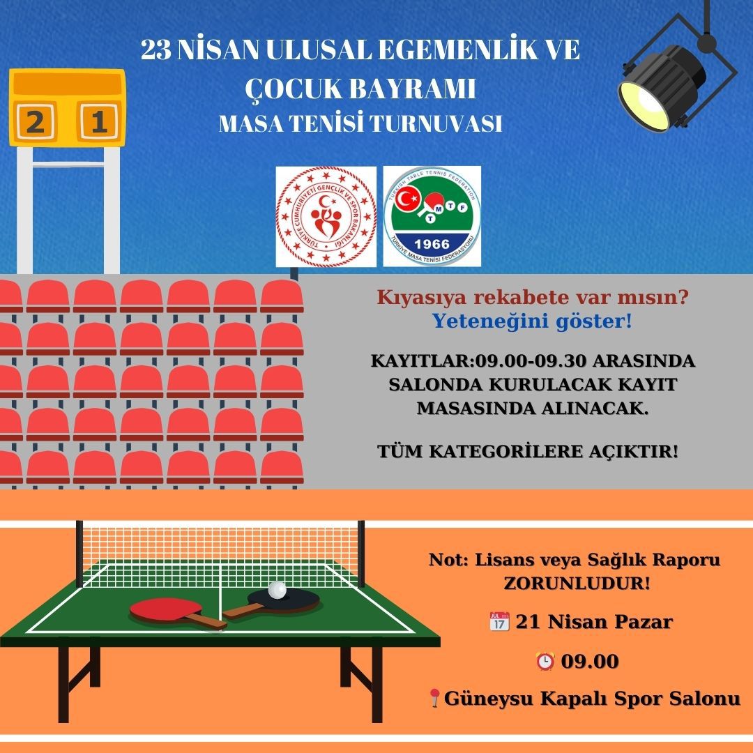 Rize’de 23 Nisan Ulusal Egemenlik ve Çocuk Bayramı’na özel masa tenisi turnuvası düzenlenecek.