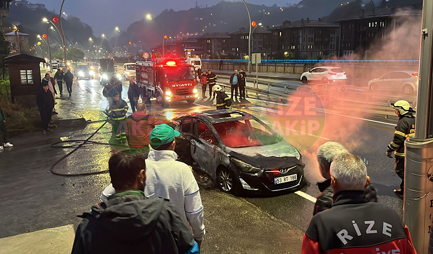 Rize'nin Güneysu ilçesinde park halindeki bir araçta henüz bilinmeyen bir nedenle yangın çıktı.