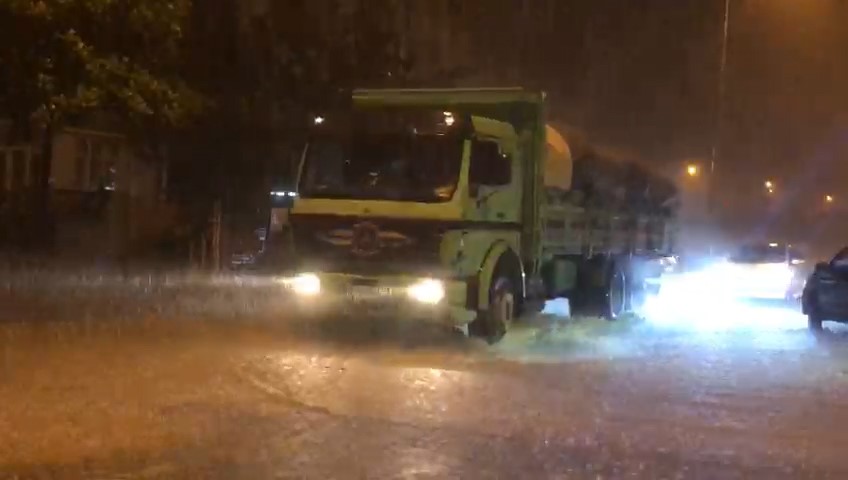 Şiddetli sağanak yağış ve mazgalların tıkanmasıyla otoyollarda göletler oluşunca sürücüler ilerlemekte zorlandı.
