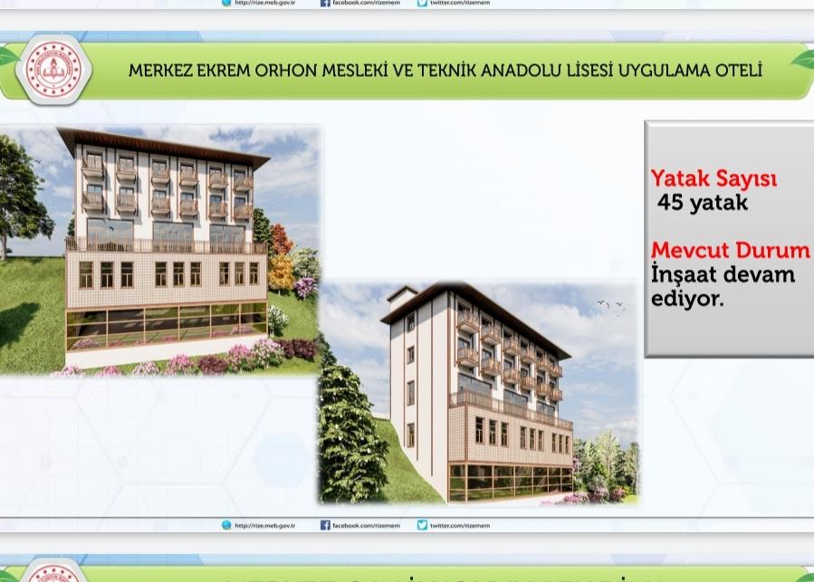 Ekrem Orhon Mesleki ve Teknik Anadolu Lisesi'nin mesleki alanlarda öğrenci yetiştirilmesinde çok önemli rol üstlenecek olan Uygulama Oteli, turizm sektörü, seminer, kurs, toplantı ve diğer alanlarda hizmet verecek.