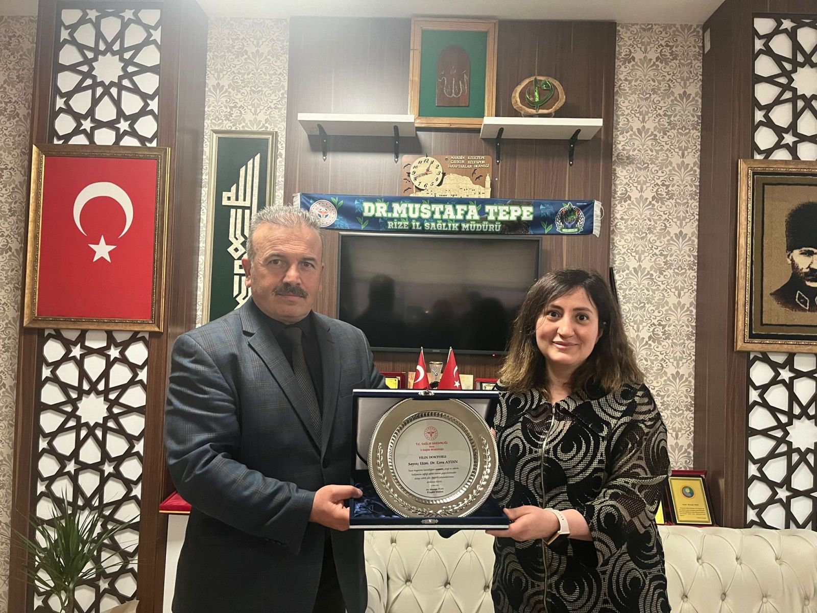 Tepe, "Görevini tüm kalbi ve vicdanı ile dur durak bilmeyen enerjisini birleştirerek, hastalarının her birini kendi yakınından ayırt etmeksizin en iyi şekilde hizmet sunan, pozitif enerji aşılayan, güler yüzlü hekimimiz Uzm.Dr. Esra Aydın’ı ilimizde kendisi gibi başarılı tüm hekimleri temsilen 'yılın doktoru' olarak seçildi. Aynı şekilde tüm başarılı sağlık çalışanlarımız adına da 7/24 saat esasıyla halkımıza sunulan acil sağlık hizmetlerinde özverili ve başarılı çalışmalarının yanı sıra mesleki bilgi ve becerisi ve örnek kişiliği ile halkımıza hizmet sunan Fındıklı 2 Nolu Acil Sağlık Merkezi İstasyonunda görevli Acil Tıp Teknisyeni Nebi Kömürcü 'yılın sağlık çalışanı' seçilmiştir. Kendilerini hizmet verdikleri tüm değerli halkımız adına yürekten tebrik ediyor, başarılı çalışmalarının diliyoruz.” diye konuştu.