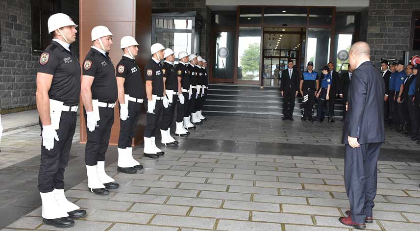 Türesin için İl Emniyet Müdürlüğünde karşılama töreni düzenlendi.