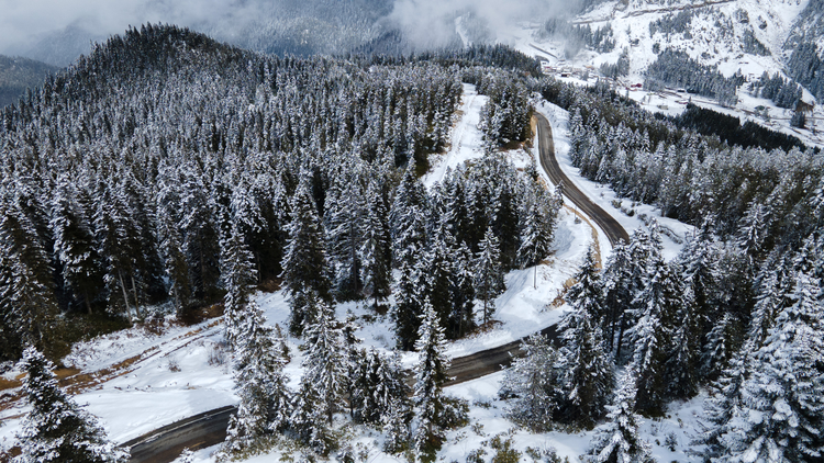 İlçeye bağlı Sazalan ve Erikbeli yaylaları ile Barak Göleti çevresinde karla kaplı ormanlık alanlarda ortaya çıkan manzara dron ile görüntülendi.