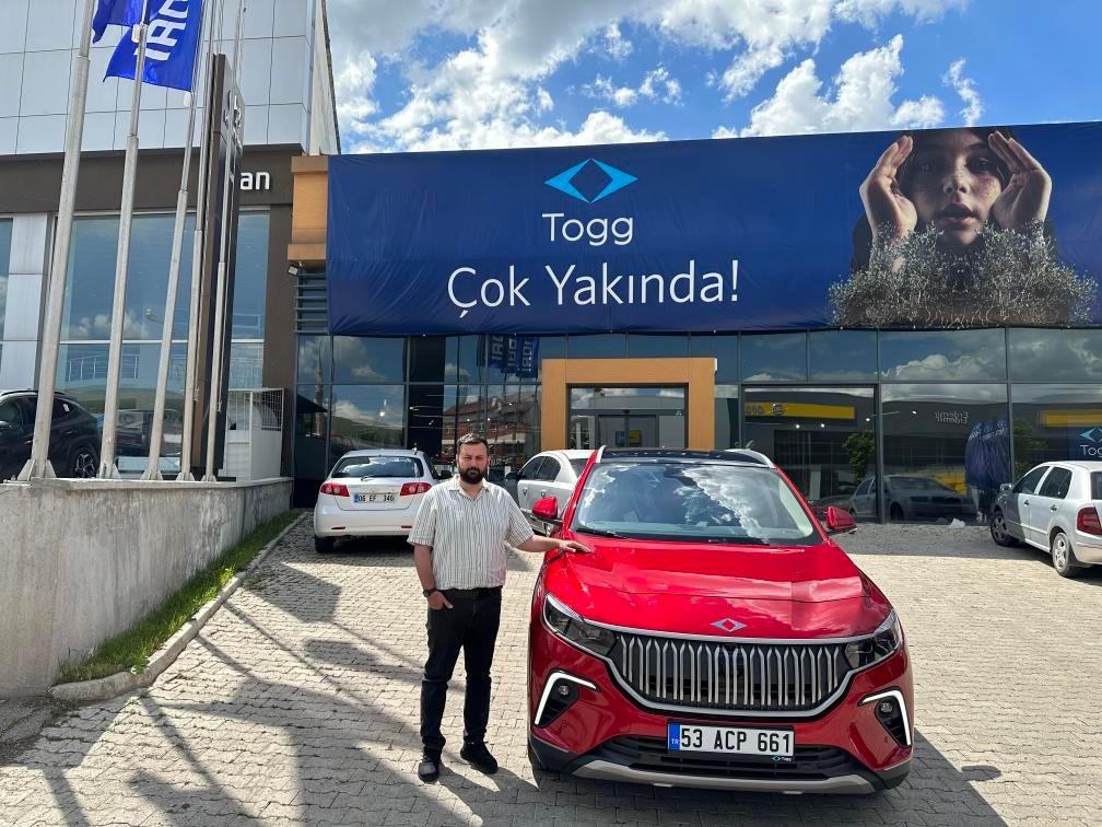 Rize'de yerli otomobil TOGG'un ilk kişisel sahibi Emrah Küçükaydın oldu.