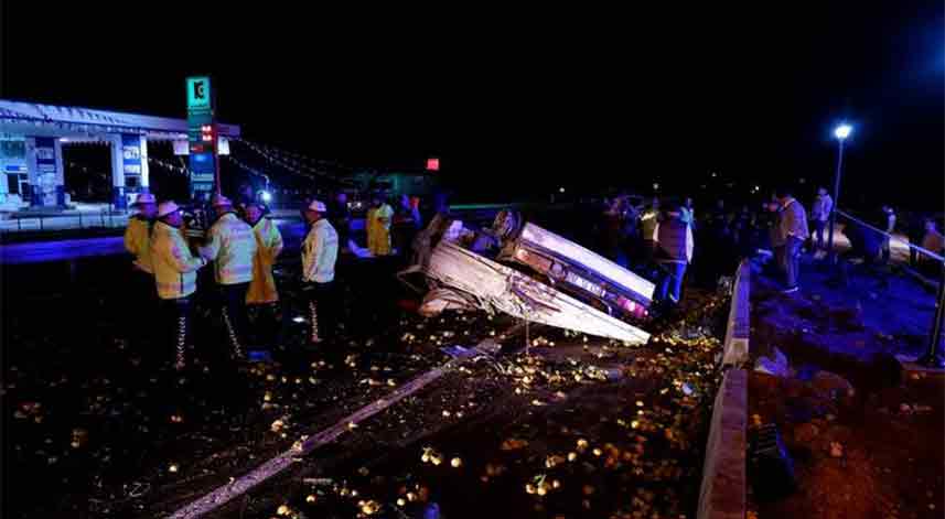 Erzurum'da hafif ticari aracın, devrilen Rize plakalı meyve yüklü kamyonete çarpması sonucu 1 kişi öldü, 3 kişi yaralandı.