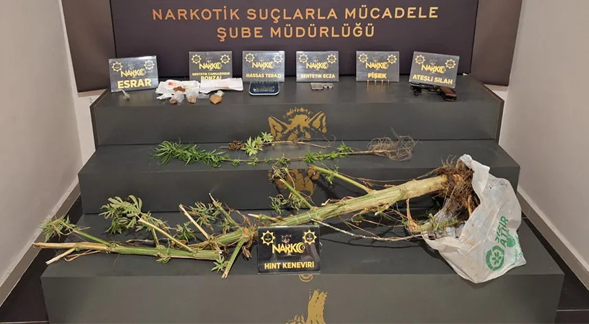 18 ekip, 1 İHA personeli, 1 narkotik dedektör köpeği ve personeli olmak üzere toplamda 72 personelin katılımı ile eş zamanlı olarak toplam 12 adrese operasyon yapıldığının kaydedildiği açıklamada, tespit edilen şahısların ikametlerinde yapılan aramalarda; 26,51 gram sentetik kannabinoid maddesi (bonzai), 0,57 gram esrar maddesi, 16 adet sentetik ecza hapı, 3 kök kenevir bitkisi, 1 adet ruhsatsız tabanca, 4 adet tabanca fişeği ve 1 adet hassas terazinin ele geçirildiği bildirildi.