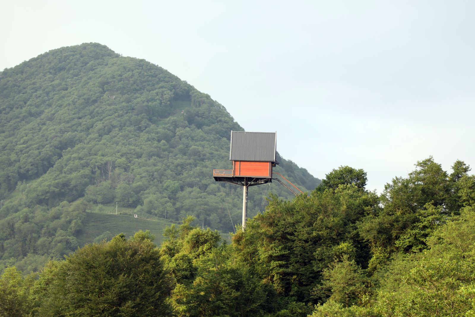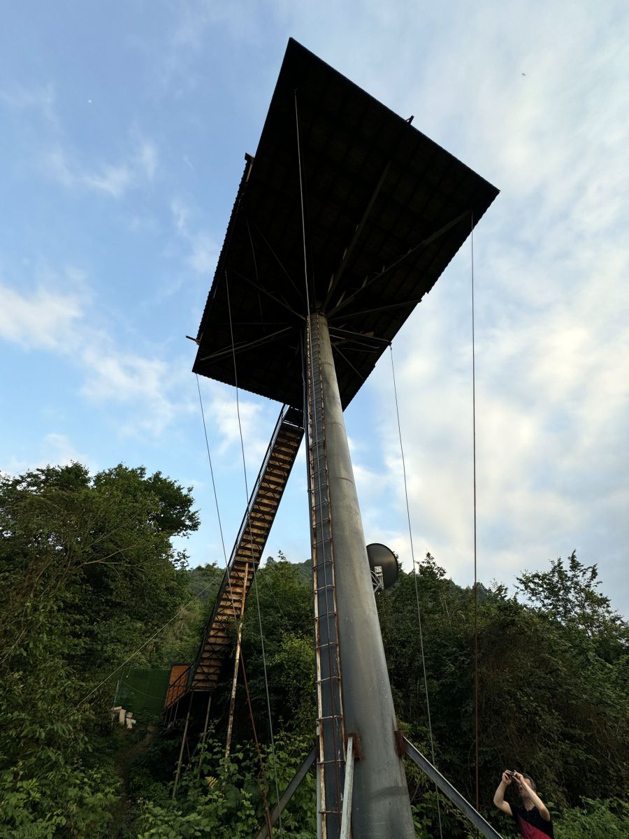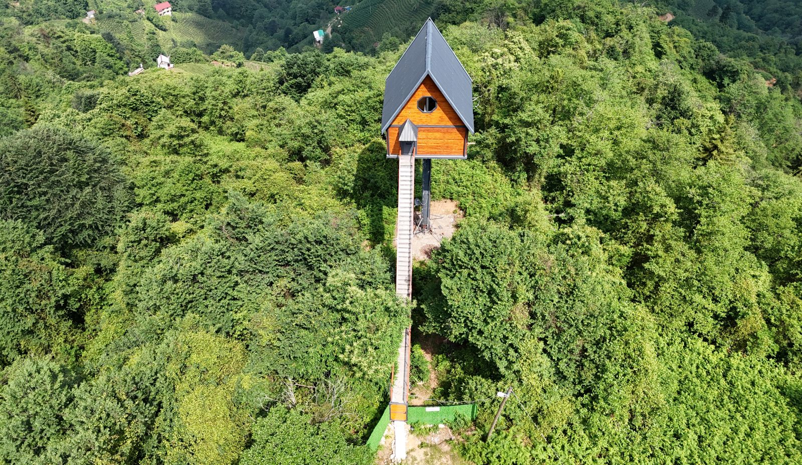 Rizeli Cihat Çelik, 6 yıllık çabası sonucunda 12 metrelik demir direk üzerine 70 metrekarelik 2 katlı ev kurdu.