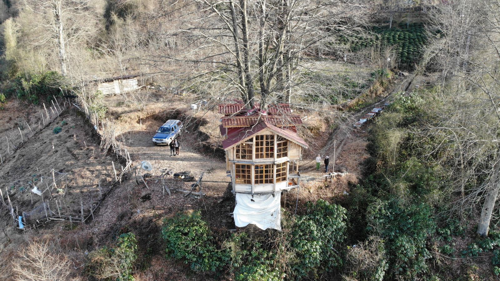 Rizeli 61 yaşındaki Ali Hamdi Uzunhasanoğlu, 150 yıllık ağacın gövdesine 2+1 ev yaptı. Ağaç evi görenler ise şaşkınlıklarını gizleyemiyor.