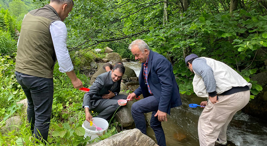 Rize'nin İkizdere ilçesinde kırmızı benekli alabalık yavruları, derelere salındı.