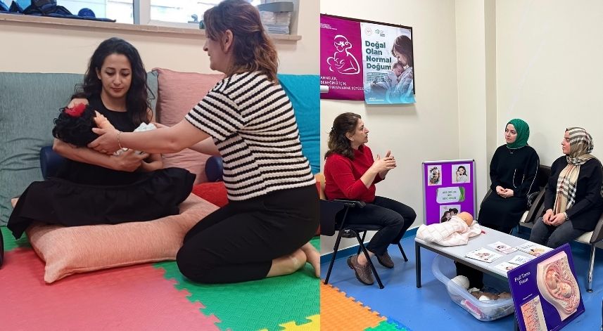 Rize İl Sağlık Müdürlüğü 'Normal Doğum Eylem Planı' kapsamında gebe okul ve bilgilendirme sınıflarında gebe kadınları, annelik yolculuğuna hazırlıyor.