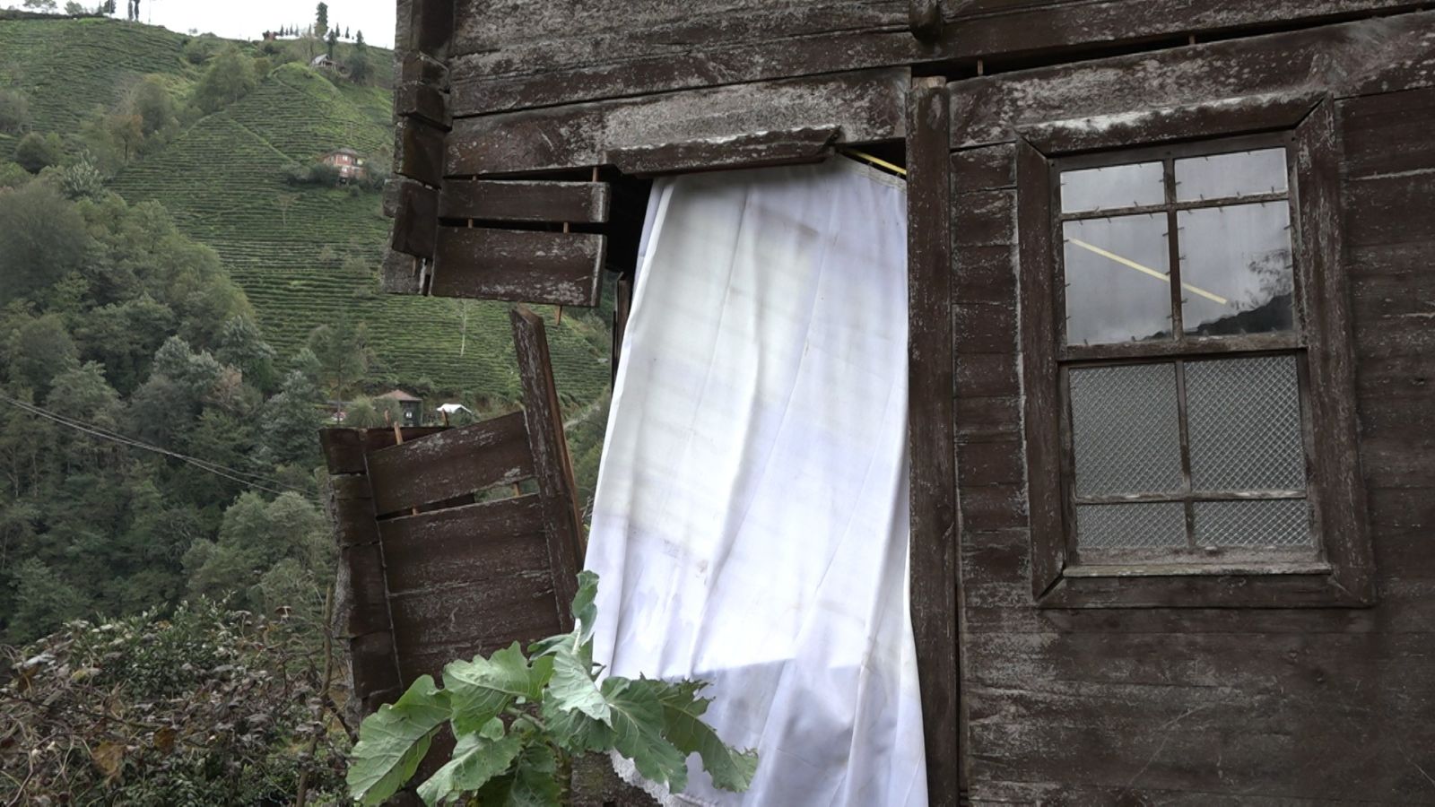 Rize'de şiddetli sağanak yağışların hayatı olumsuz etkilediği asırlık ahşap ev heyelan nedeniyle yıkıldı.