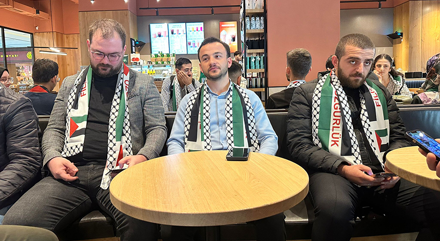 Dünyada ünlü kahve markası Starbucks'ın İsrail'e desteğini açıklamasına AK Parti Rize Gençlik Kolları'ndan tepki geldi. Şehir merkezindeki bir AVM'de yer alan Starbucks'a giden gençler, oturarak, sessiz eylem gerçekleştirdi.