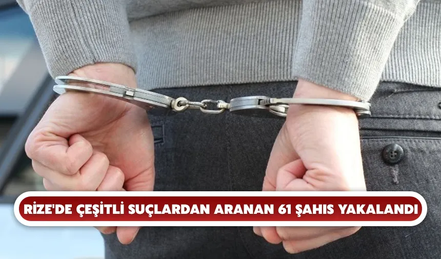 Rize İl Emniyet Müdürlüğü'nden yapılan açıklamada, 22 Aralık 2024 - 21 Ocak 2025 tarihleri arasında aranan şahısların yakalanmasına yönelik yapılan çalışmalar kapsamında 61 şahsın yakalanarak, haklarında gerekli adli işlemler yapıldığı kaydedildi.
