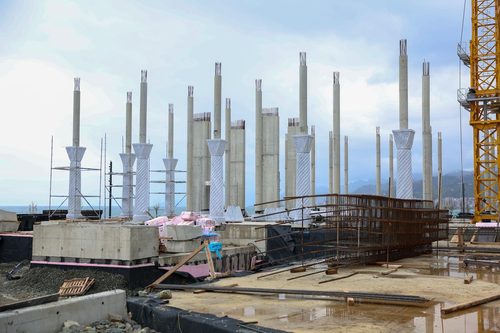 Rize Millet Bahçesi içinde yer alacak ve Cumhurbaşkanı Recep Tayyip Erdoğan'ın adını taşıyacak cami inşaatında çalışmalar devam ediyor.
