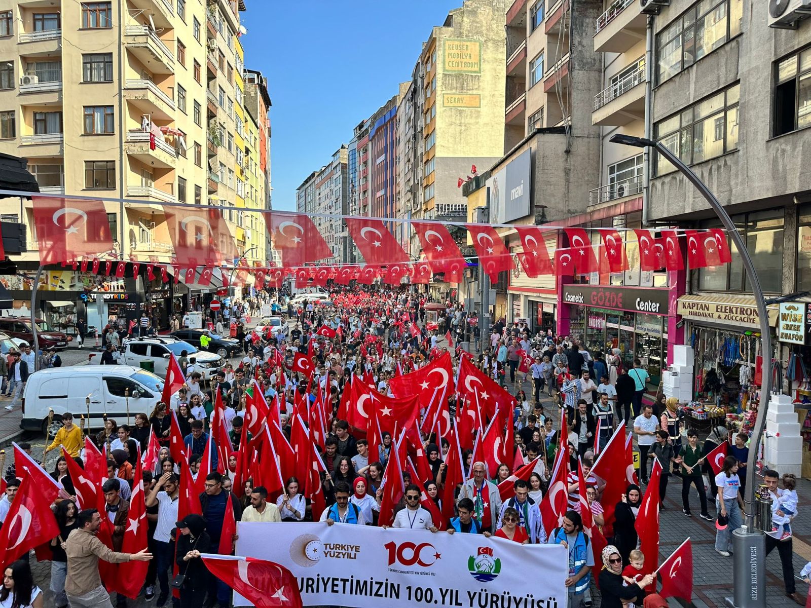 Rize'de Cumhuriyet'in 100. yılı etkinlikleri kapsamında yürüyüş düzenlendi.