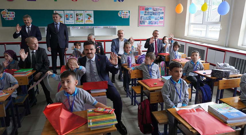 Ana sınıfı ve 1. sınıf öğrencilerinin balon uçurmasının ardından sınıfları gezen il protokolü öğrencilerle bir araya gelerek, çeşitli hediye takdiminde bulundu.