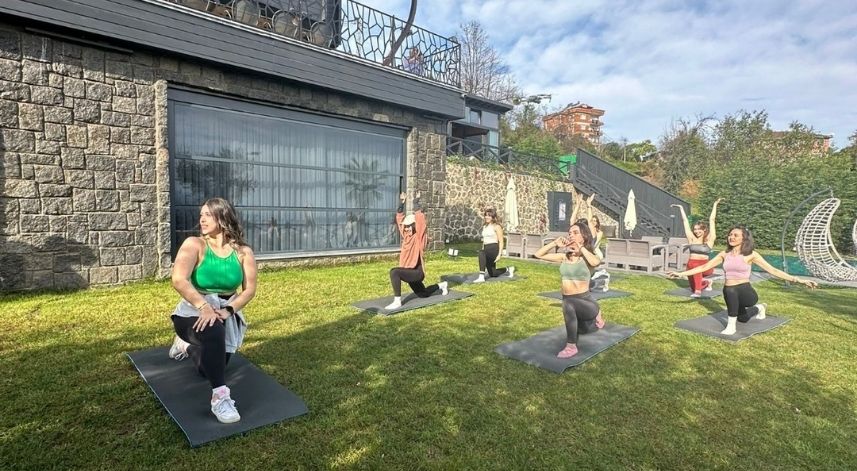 Etkinlik kapsamında pilates ve yoga yapıldı. Açık havada yapılan etkinliğe katılanlar güneşin ve doğanın keyfini çıkartarak spor yaptı.